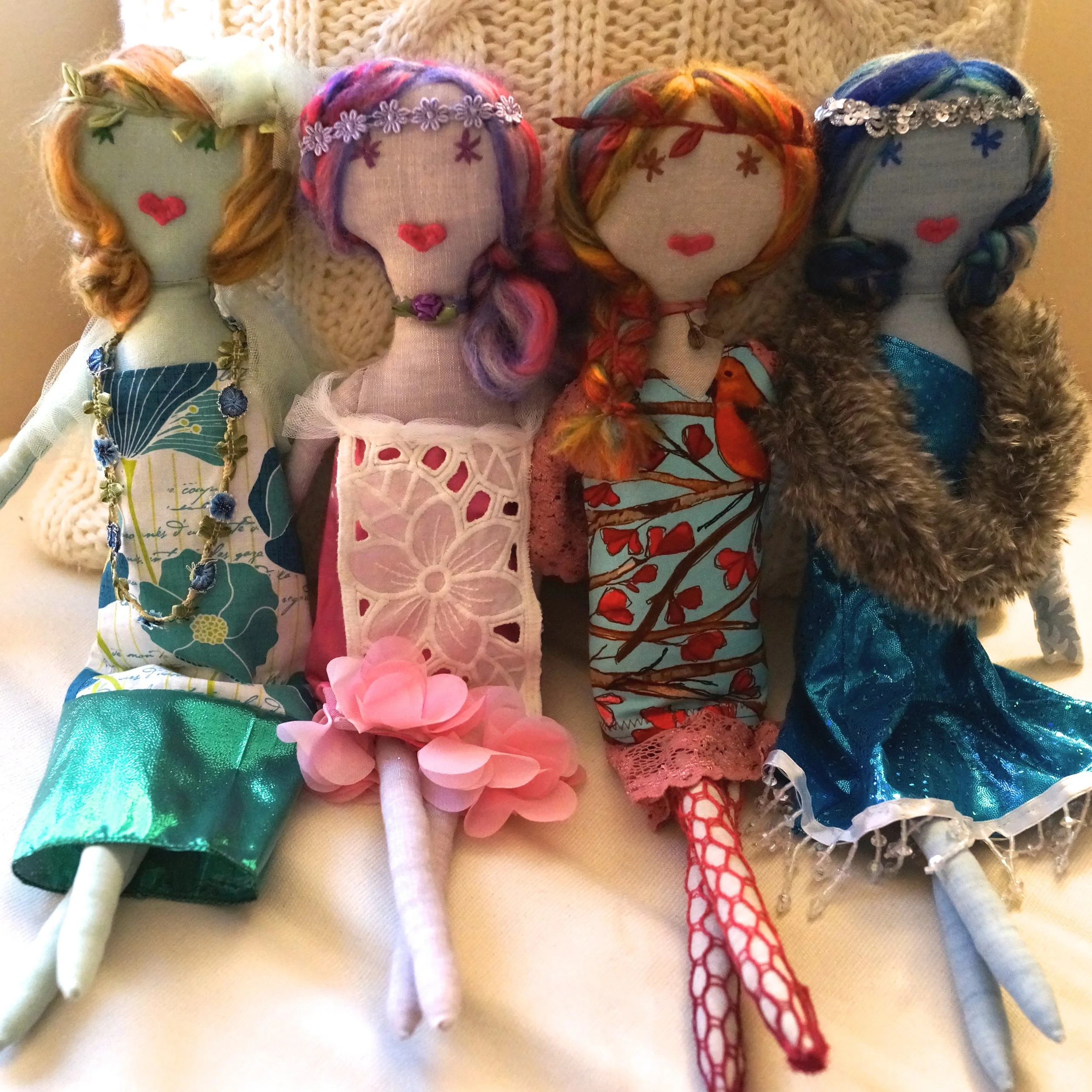 When I first began creating original designs, my vision was to design and make dolls that I could sell online. I had been taking sewing lessons and quickly became enamored with fabric, trim, and learning to create my own patterns. After I completed the first four dolls, I discovered the concept of sewing machine "sketching" and had a ball fashioning original designs that I then sketched and stitched onto pillows. After adding home décor to my repertoire, it wasn't a stretch to also dive into making cuddly fleece softies. The one constant was my desire for the designs to embody nature in some way, so each of my collections — whether dolls, pillows, or softies — correlated with the changing seasons. Seattle is such an amazing place for makers, and I was fortunate enough to have the opportunity to sell my creations locally, first at the charming Current & Furbish shop in my local neighborhood village of Magnolia and later at the The Handmade Showroom in downtown Seattle's Pacific Place. You can find all of those designs featured below... Although I have chosen to transition from selling tangible products to creative writing, consulting, and teaching, I continue to create for the pure joy of doing so and the challenge of trying something new.