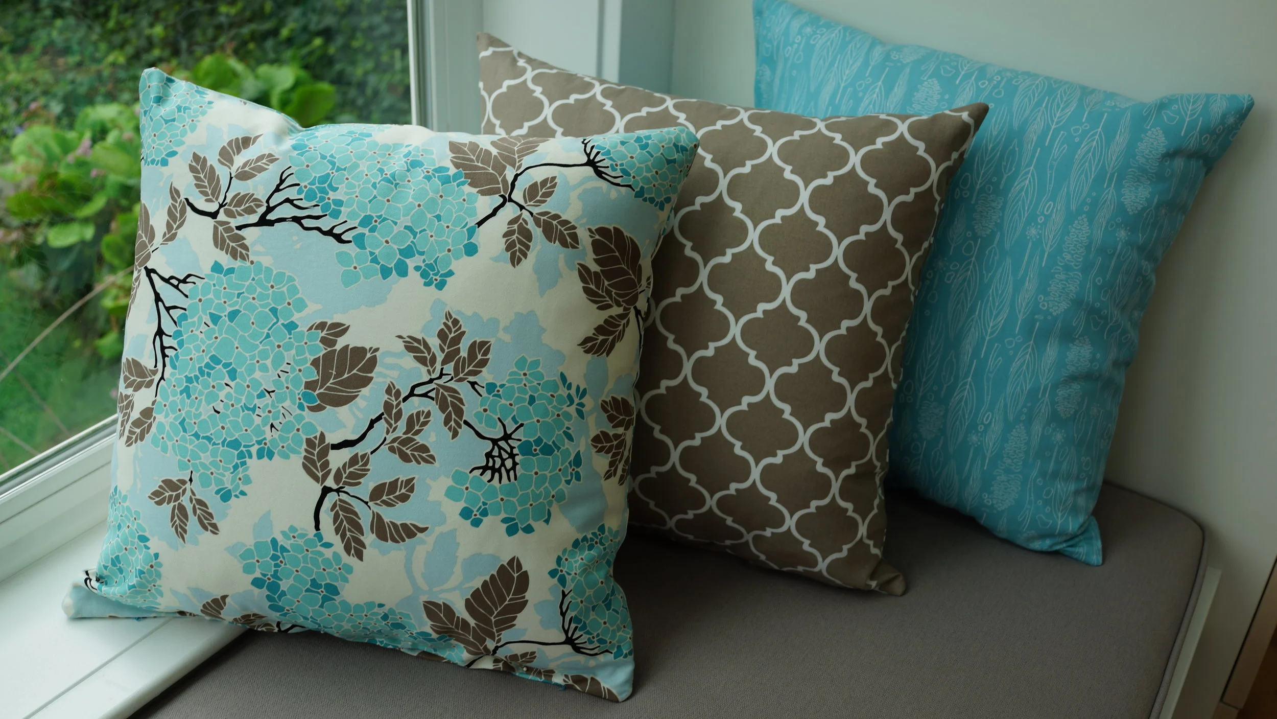 My first foray into home décor design was pillows. I loved discovering gorgeous fabrics and selecting color palettes that complemented each season. When I designed my first pillow collection, it was spring, so I opted for fresh, light blues, aqua, and taupe.